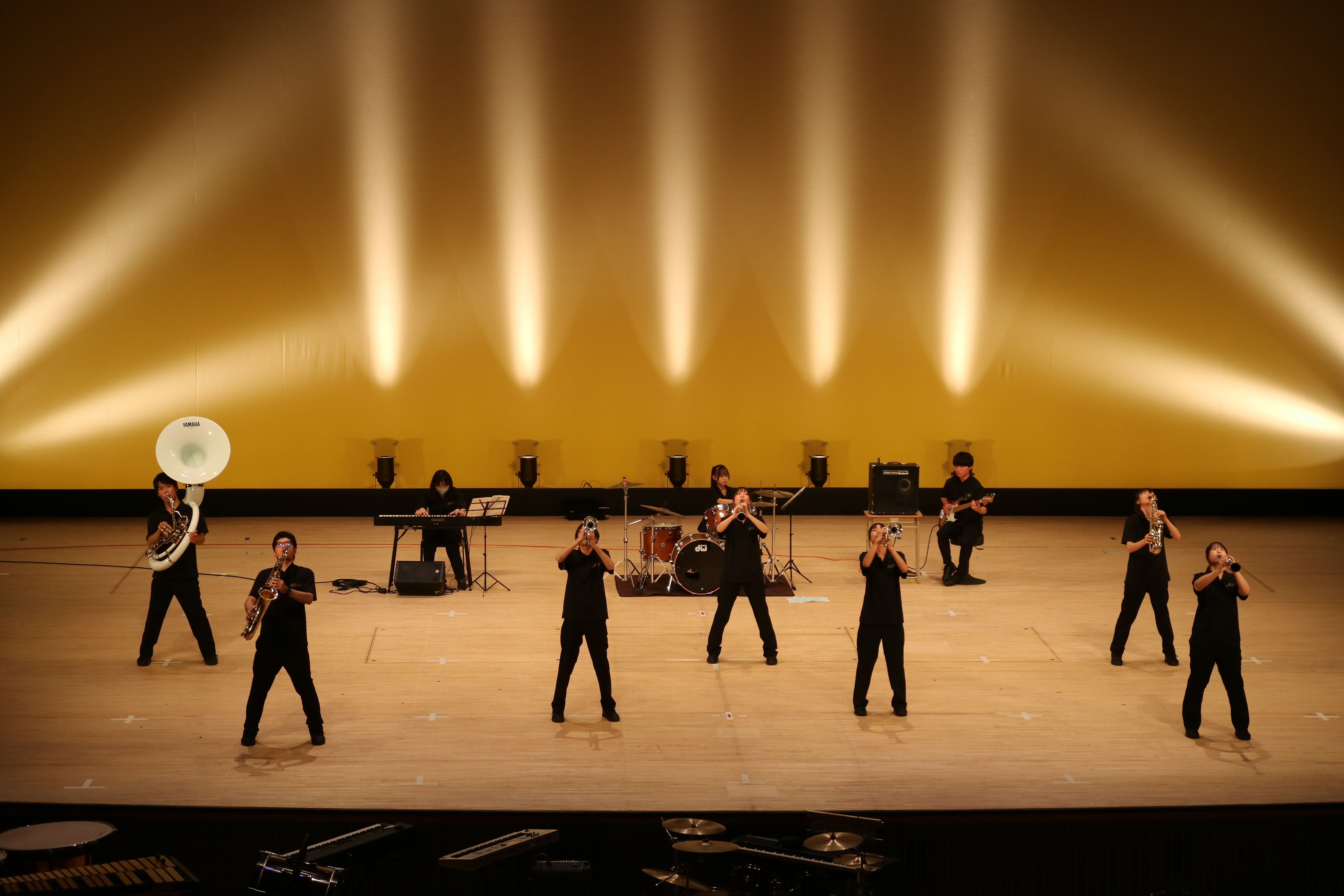 全員で低音楽器だけのアンサンブルや打楽器アンサンブルを、映像やダンスの演出を交えながら演奏しました。
