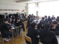 投資体験ゲームでは、各グループ楽しみながらも、投資先や投資額について話し合う姿が見られ、投資には情報収集や予測が必要で、日本並びに世界の情勢に関心を持つことが重要だということを体験することができました。