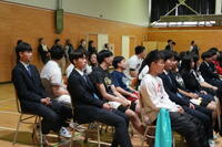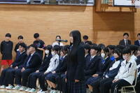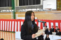 今年度最終登校日である本日、修了式・離任式が行われました。式に先立ち、第57回全国学生書道展にて最高賞を受賞した2年D組の諏江未来さん(すえみらい)をはじめとした各種賞状伝達がありました。離任式では転出(退職)される方々より、それぞれ生徒達に向けお話をいただきました。お世話になった方々に生徒・教職員一同感謝申し上げます。ありがとうございました。
