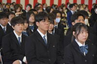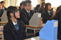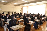 2月27日(金)約1か月間家庭学習期間に入っていた3年生が久しぶりに登校し、3月1日の式当日に向け1・2年生と共に最終確認を行いました。また、商業科外郭団体表彰伝達式および同窓会入会式も行いました。